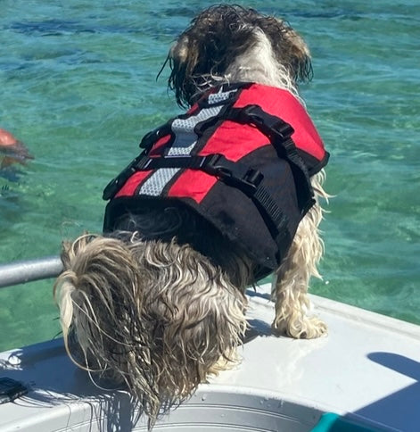 - Full-length lifting handle and leash attachment for doggy overboard situations
