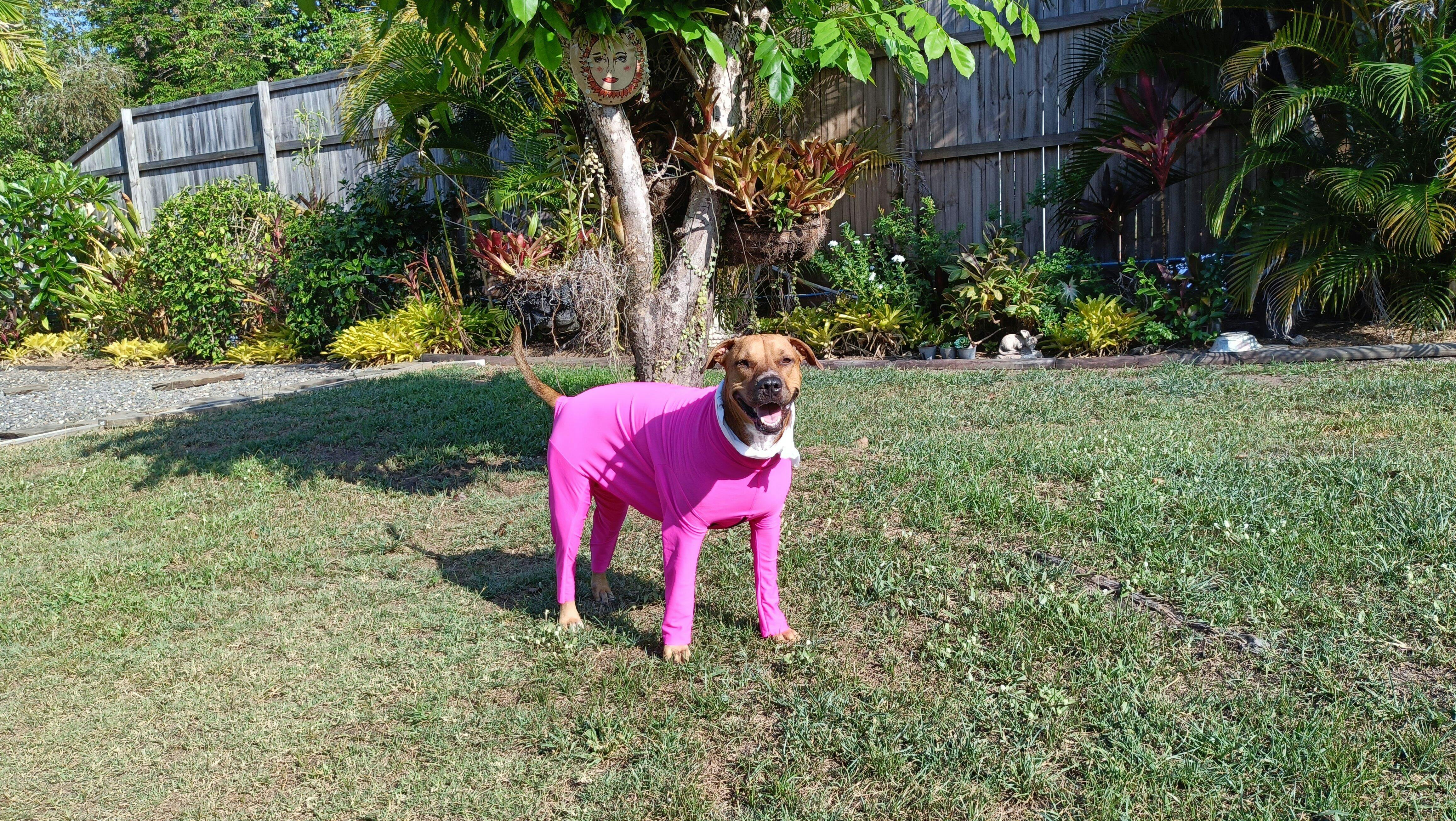 The Dog Body Suit can reduce UV Ray exposure especially in fair skinned and white dogs.