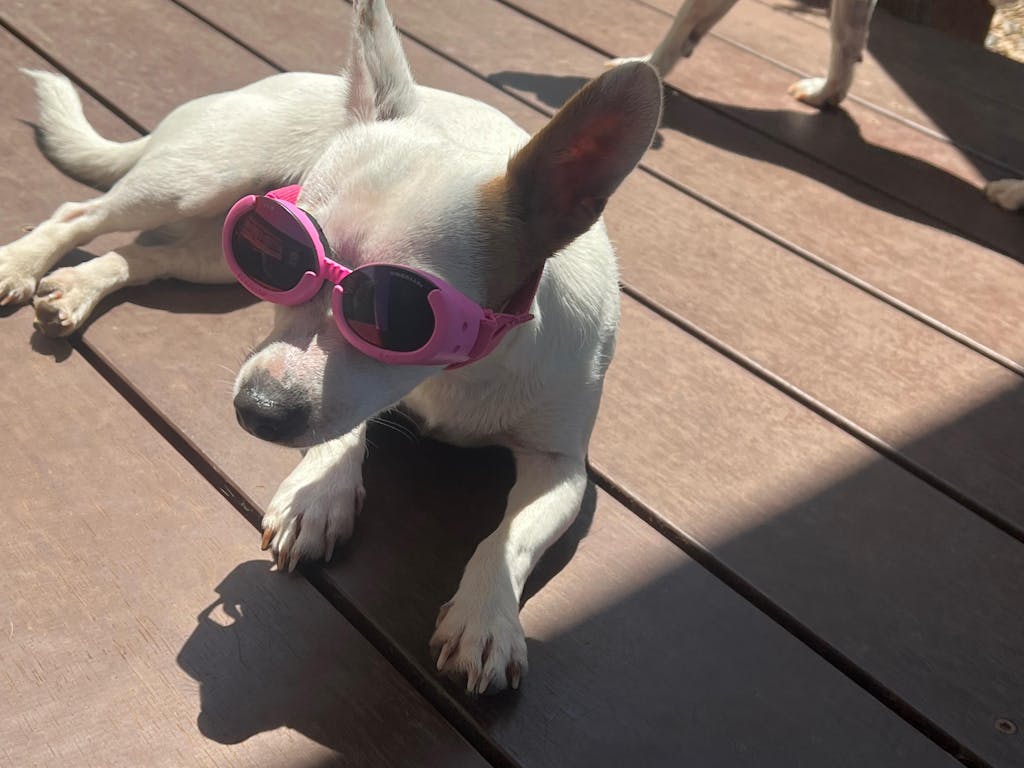 Please take care when ordering sun protection glasses for your dog. Buy none at all as opposed to cheap ones. Just like with your own sunglasses to get 100% UV protection the lenses have to be specially made and if you are looking at a pair under about $40 they will not provide the protection required. Lenses that are simply coloured could be potentially damaging as they will allow more light into your dog's eyes without filtering the UV rays which caused damage.